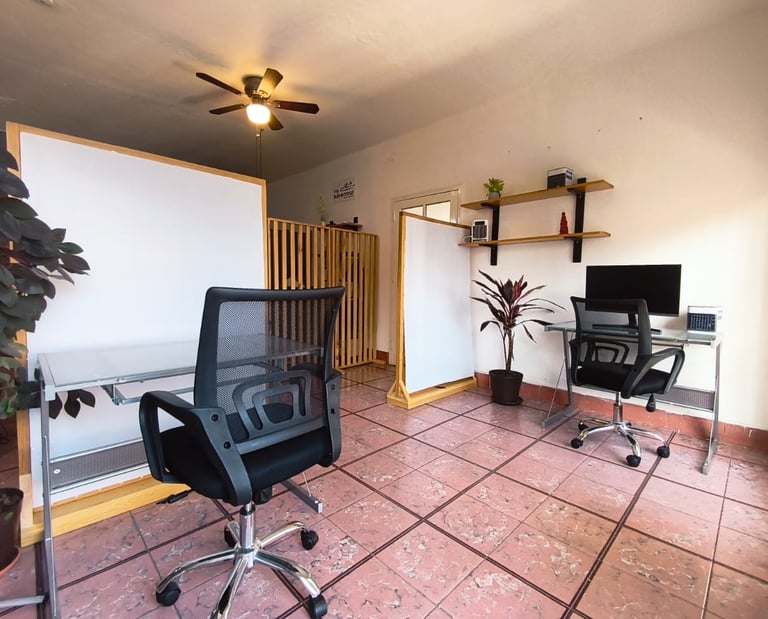 Oficina completa para tu equipo de trabajo, disfruta de la colaboración y privacidad de este espacio en el centro de la ciudad. Espacio totalmente diseñado para enfocarse en la productividad y el trabajo colaborativo; cada miembro de tu equipo puede disponer de un escritorio para mayor comodidad.
