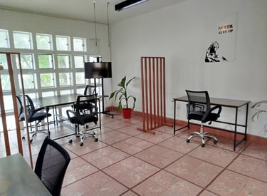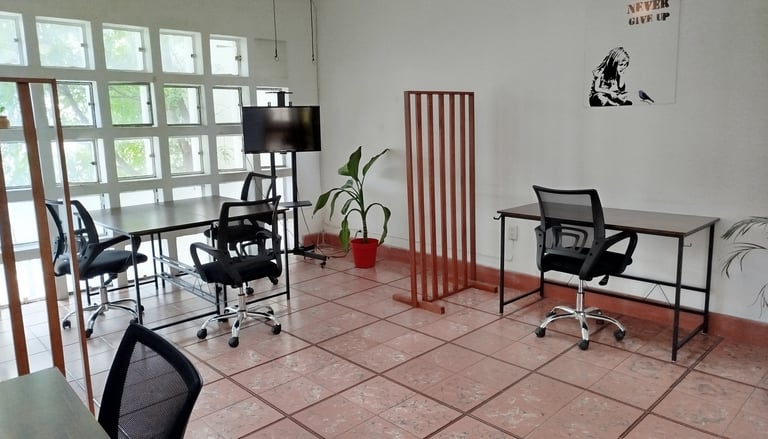 Oficina equipada lista para mudarse, con amenidades compartidas y privadas.