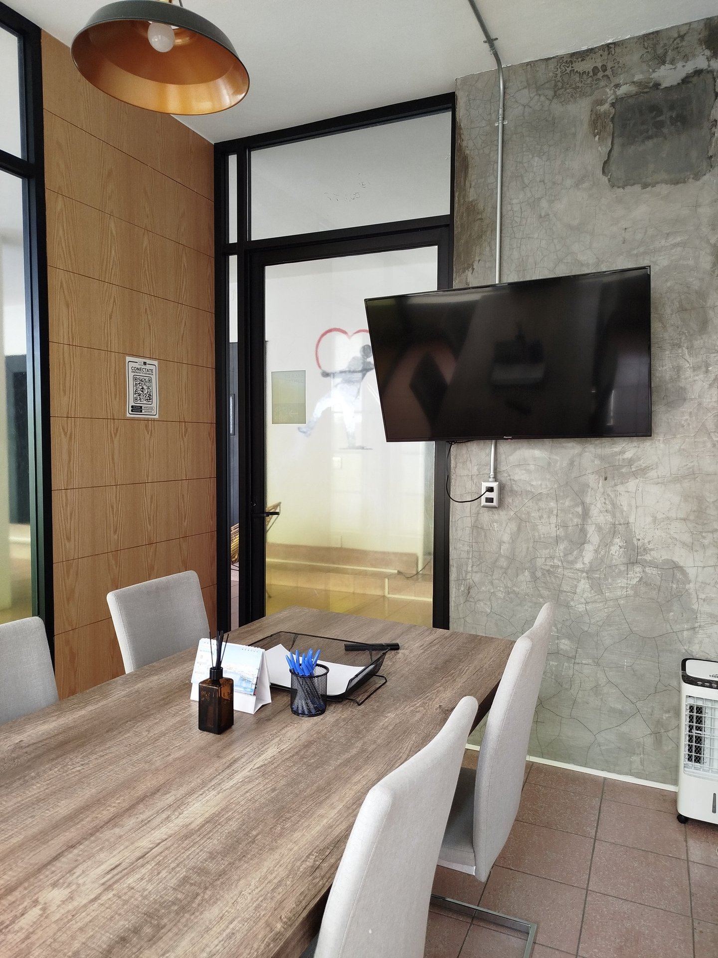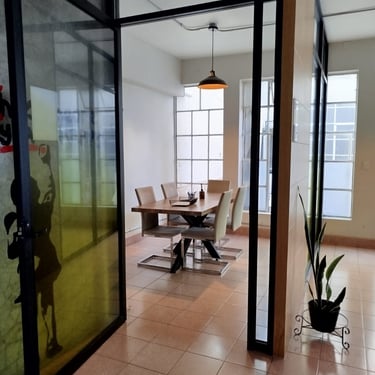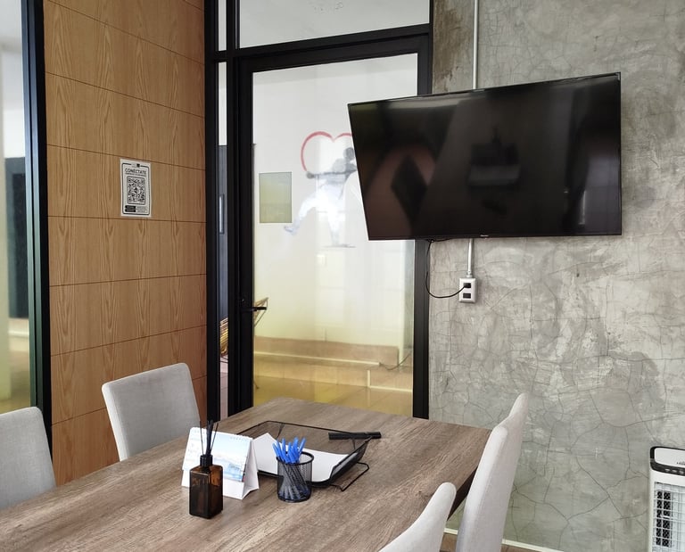 Diseñada para ofrecer un ambiente privado y libre de distracciones. Aislada acústicamente, es el espacio perfecto para reuniones importantes, presentaciones o trabajo en equipo, garantizamos comodidad y profesionalismo en cada detalle.